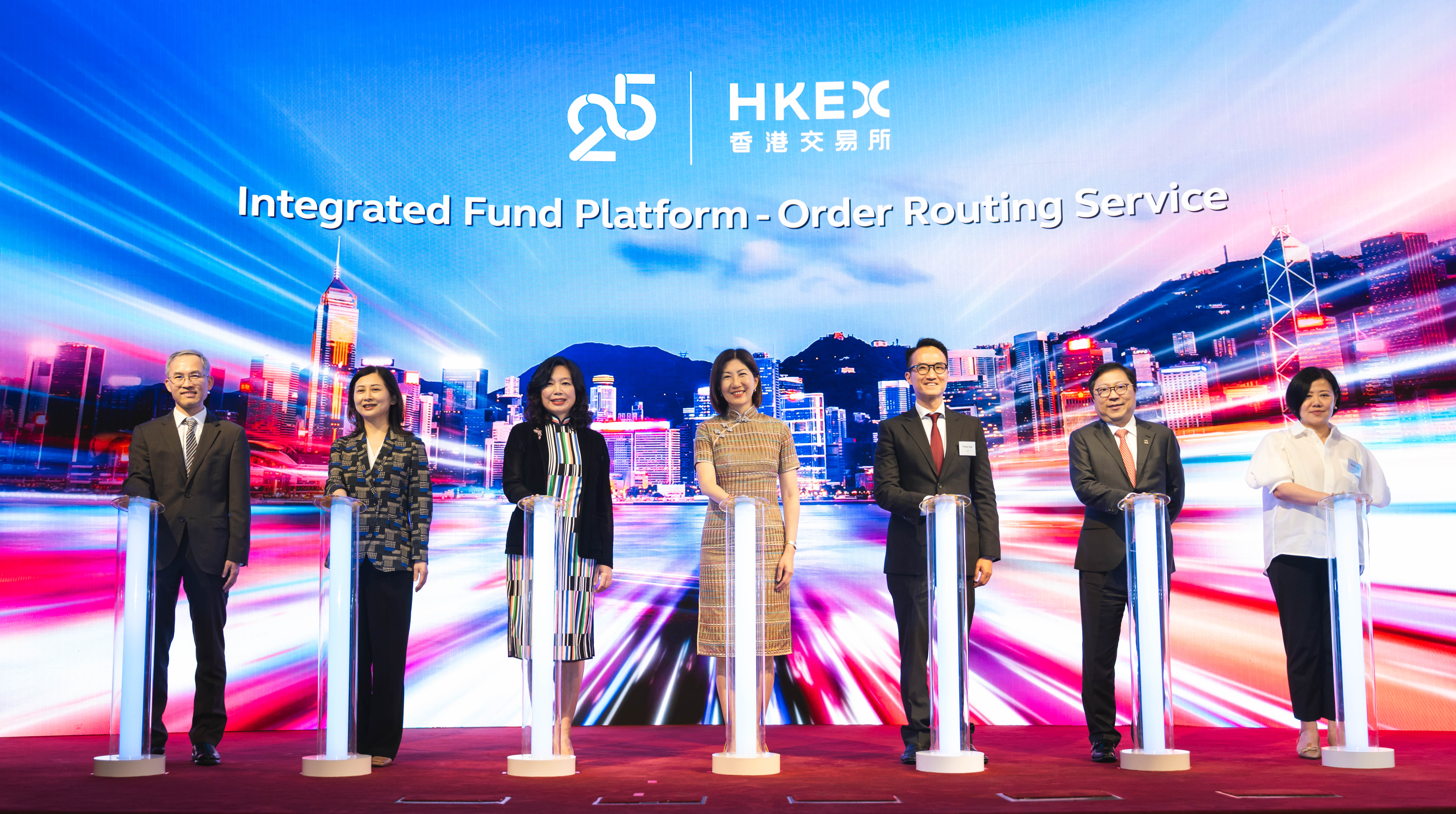 7月3日,港交所和深交所合作建設的香港綜合基金平臺推出訂單傳遞功能,正式面向市場提供核心服務。這是深港兩所合作促進香港基金分銷生態圈發展的重要成果。香港財經事務及庫務局、香港證監會、港交所、深交所有關負責人出席當日服務上線儀式。