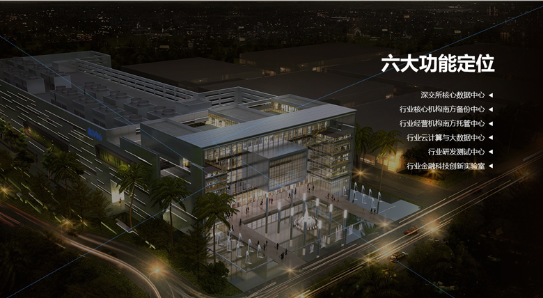 中國(guó)證券期貨業(yè)南方信息技術(shù)中心(簡(jiǎn)稱“南方中心”),是深交所為貫徹落實(shí)中國(guó)證監(jiān)會(huì)《資本市場(chǎng)信息化建設(shè)總體規(guī)劃(2014-2020)》要求,在東莞投資建設(shè)的特大型行業(yè)基礎(chǔ)設(shè)施項(xiàng)目,總占地面積約13.5萬(wàn)平方米,于2016年6月投入運(yùn)營(yíng)。